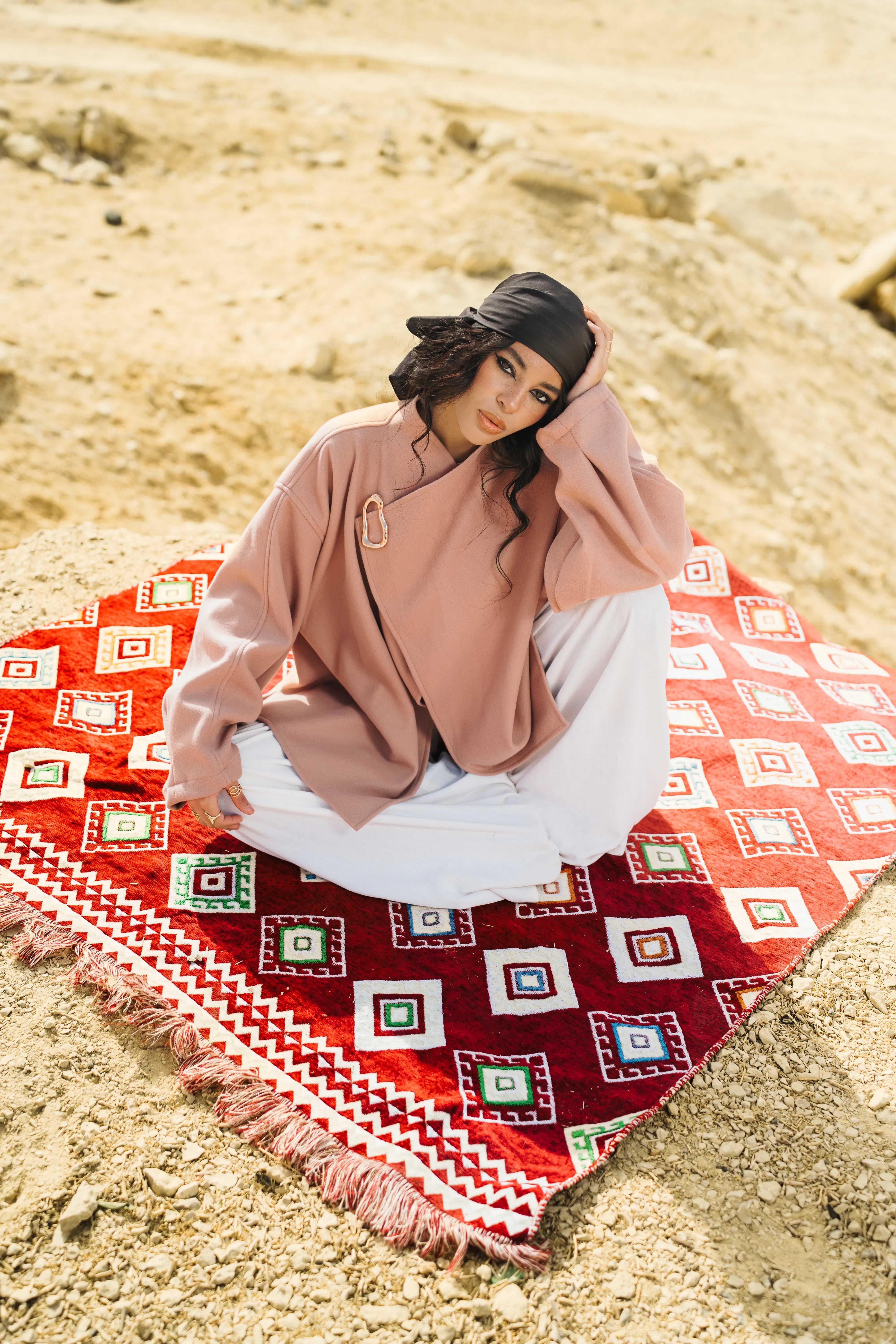 A structured ivory wrap-style top in Nude Pink color with relaxed sleeves and an elegant drape. Finished with a statement pin included for a refined, modern touch—perfect for effortless layering.